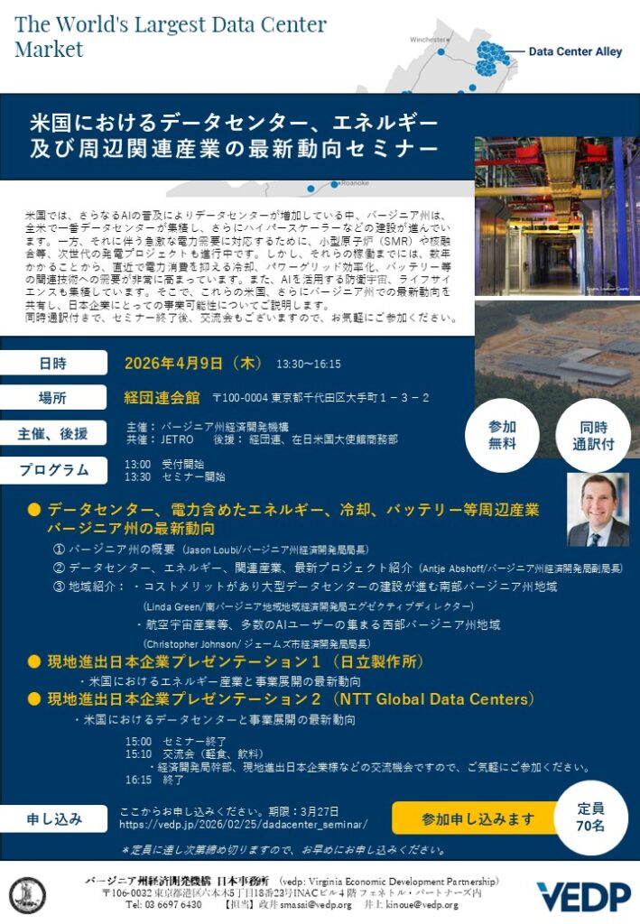 (講演1)データセンター、周辺産業、バージニア州の最新動向
